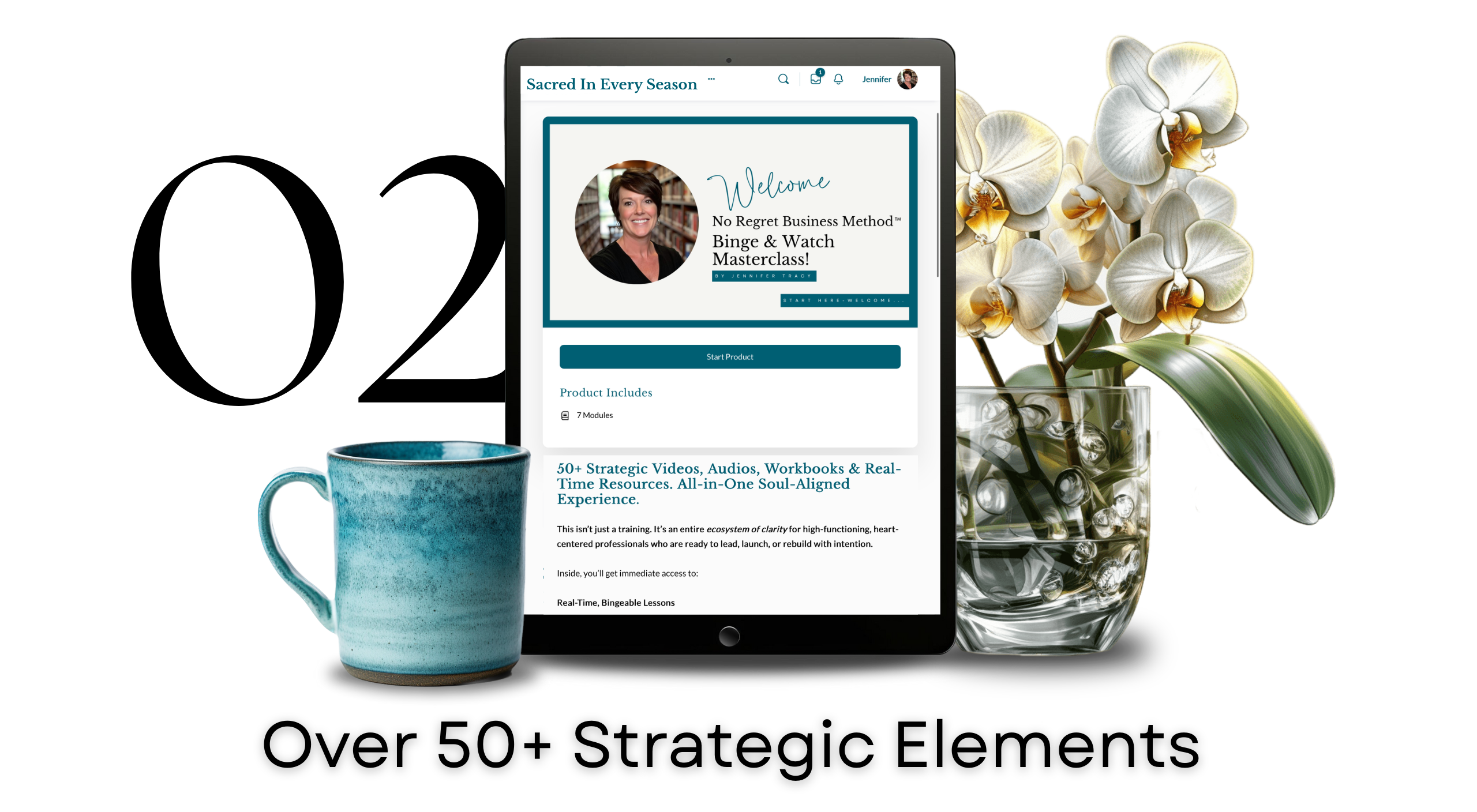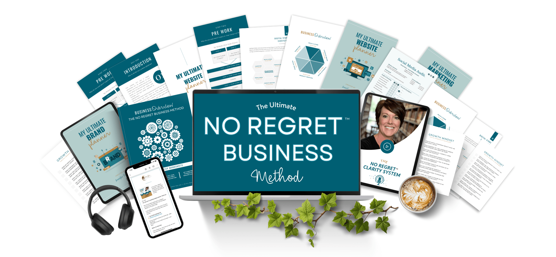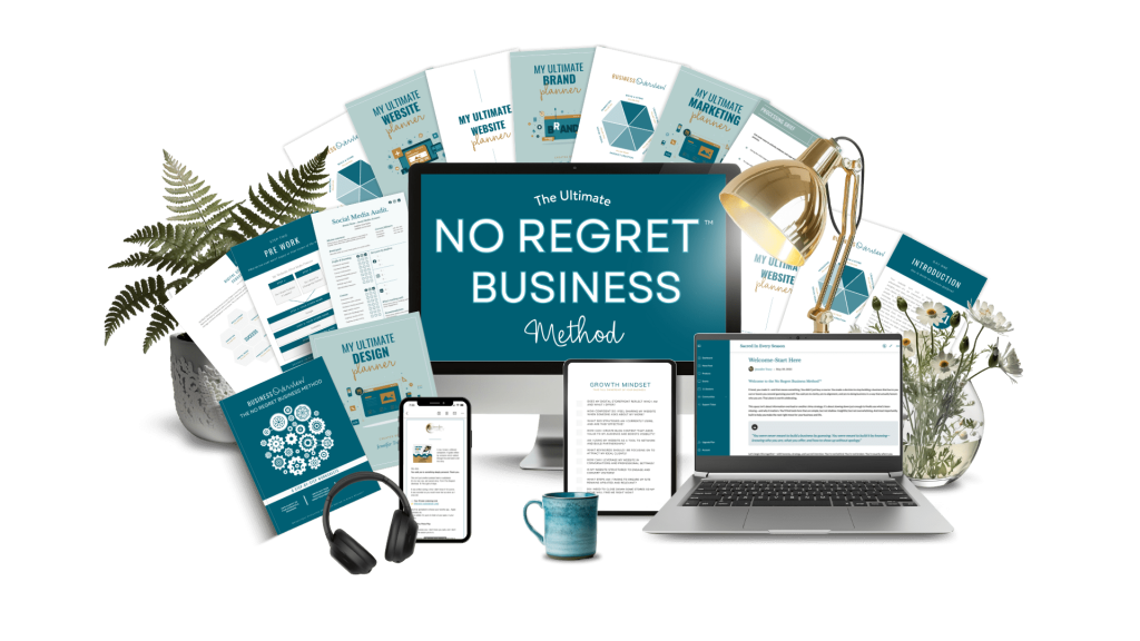 • The No Regret Business Method™ includes over 50 powerful elements—a complete clarity ecosystem designed to help high-functioning, heart-centered professionals stop spinning and finally build a business that fits their life, energy, and purpose.